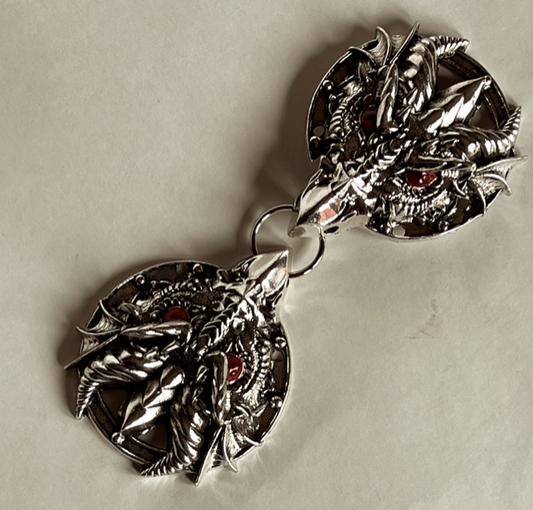 Cloak Clasp - Silver Red Eye Dragon Cloak Clasp