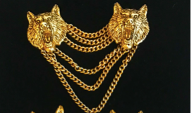 Cloak Clasps - Large Lion Cloak Clasp with chain Silver or Gold